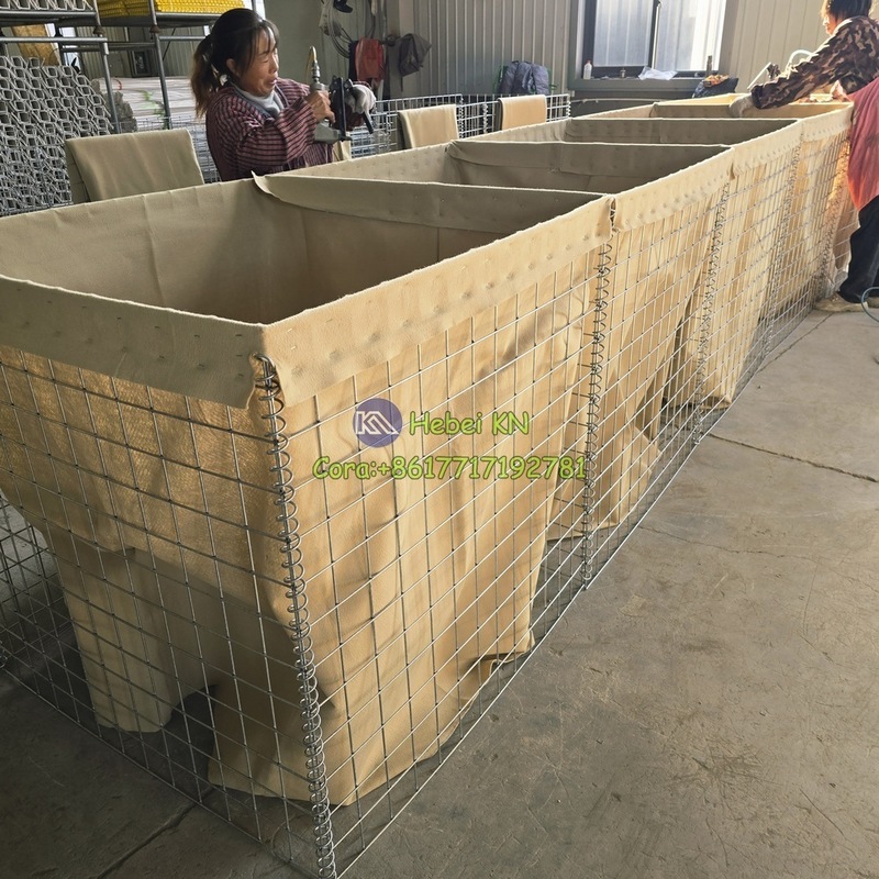 The defensive barrier is usually connected with spiral wire, which allows the gabion mesh box to be folded up for easy loading and transportation, and it can be quickly shaped, filled with soil or stones and put into application when in use. The springs are all made of high strength steel wire, which can greatly improve the sturdiness of the defensive barrier.